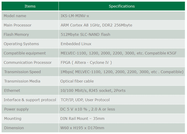 - IKS-LM-MINV를 단종된 MITSUBISHI 사의 MELVEC Inverter 통신용 제품인 K5GF H/W 제품을 대체하기 위해