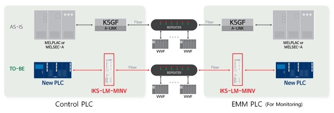 - IKS-LM-MINV 는 MELPLAC-550, 650, 750 등의 PLC의 K5GF 대체 및 MELSEC-A 의 A-LINK의 대체가 가능합니다.